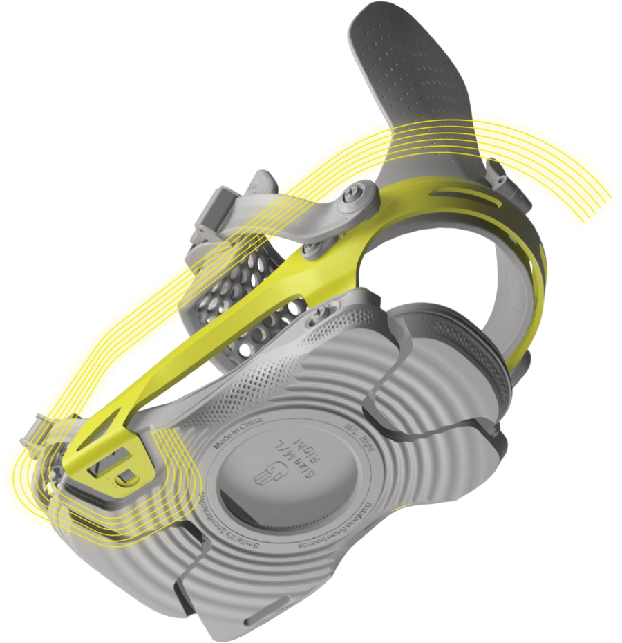 Auxetic Shape Technology uses hinged patterns that expand perfectly around your boot without stretching or distorting the material eliminating pressure points, providing next level support and comfort.